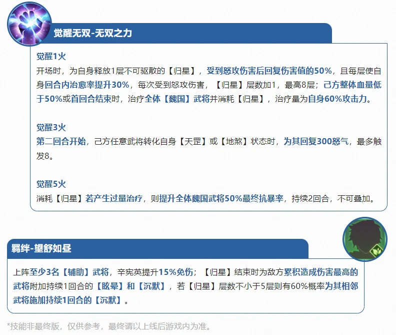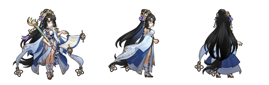 辛宪英是一位文静内敛的数理天才。结合这个突出的特点,在技能上很自然就想到古代的算筹,一种兼具占卜和计算的古老工具。她的动作尽量轻柔平稳,但并不犹豫扭捏,靠着自己的聪慧能快速计算出未来的某种预兆。技能里尽量结合她的两件道具去展现她的数理能力,并且用算筹的演算过程推演出自己的未来。