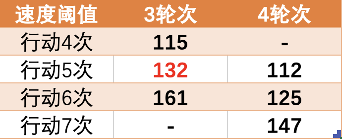 每个「行动」消耗的「轮次」长度 = 10000 * 100 / 「速度」;