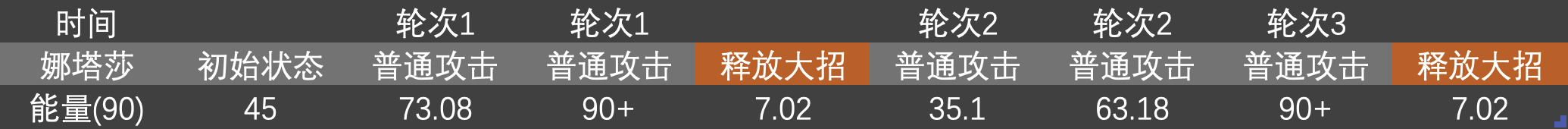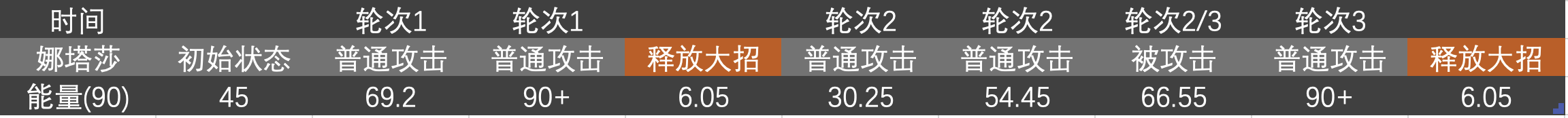在轮次2/3内,娜塔莎有较大概率被敌人攻击至少一次,因此即使不搭配充能绳,依然可以实现与充能绳一样的充能循环。当然,前提是拥有满精「一场术后对话」,否则还是需要搭配充能绳的!