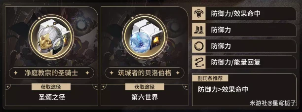 主词条的话可以无脑全堆防御力,主打战技护盾增强。不过要是想走控制流,也可以选个命中效果的躯干和能量回复的连接绳。副词条的选择思路也是类似。