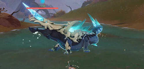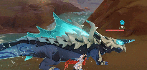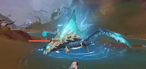 而当玩家及时击破了「噬骸能量块·水」时,玩家获得持续20s左右的噬骸Buff·水,其仅对圣骸角鳄生效,持有该Buff时,攻击命中圣骸角鳄可以使其立即瘫痪: