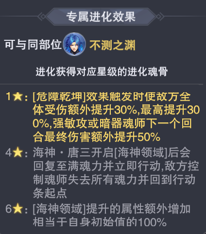 不过在大部分拥有SP波赛西的玩家都会着重培养和上阵波赛西的前提下,另一条控制系支柱链接的练度战力可能就不那么好看了,而SP海三想要登场也势必会链接到这一条支柱上......这便会使SP海三的4-2技能的增伤效果出现非常之大的缩水,所以在SP海三没有较高或超高练度的前提下,他的综合长图增伤能力是比不过已经有了进化魂骨的海魔女的,这点大家需要特别注意