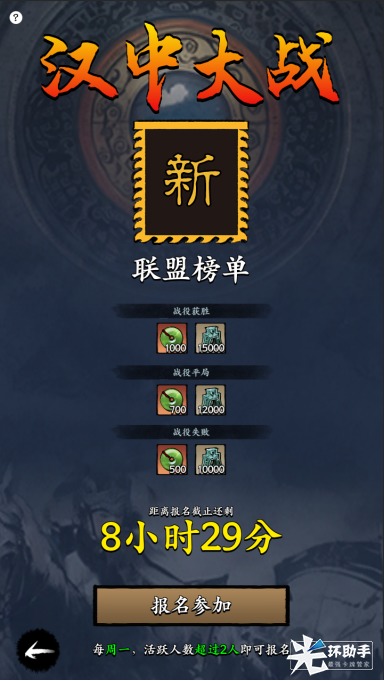 1)报名条件为:联盟4级且上周活跃人数大于等于10人,仅限盟主与副盟主可报。