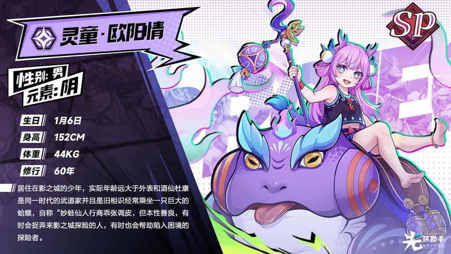 居住在影之城的少年,实际年龄远大于外表和酒仙杜康是同一时代的武道家并且是旧相识经常乘坐一只巨大的蛤蟆,自称“妙蛙仙人”。乖张调皮,但本性善良,有时会捉弄来影之城探险的人,有时也会帮助陷入困境的探险者。