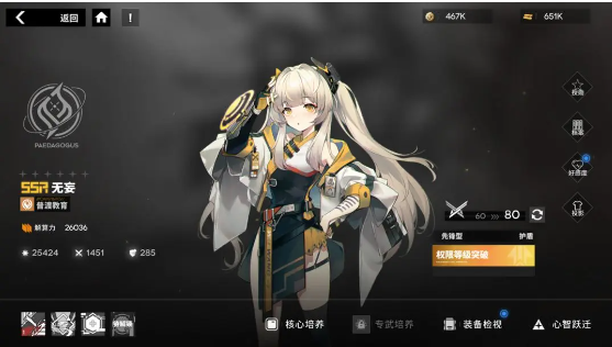 在游戏中心武卫以解算力作为该角色综合属性的表现,角色拥有越高的解算力,战斗表现也就越发出色。想要提升角色解算力、对角色进行养成培养,可以从角色的等级、装备、心智、专武等等方面进行培养。