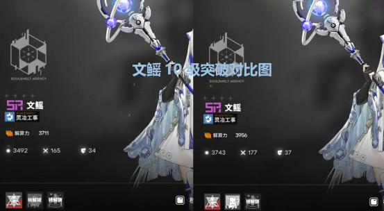 以文瑶为例,定位支援型的角色突破会较大幅度提升体力属性,10级的突破也会解锁第二项技能,多一项技能对于战斗的提升十分关键。小伙伴们可尽早突破。