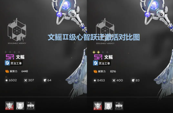 SR与R级角色的心智跃迁材料获取更为容易,这里以文瑶的心智跃迁举例,2星的文瑶将比0星文瑶提升近2000的体力值,相当于8级左右的数值提升。另外还会将305%的治疗量提升至384%,对于一个需要治疗的团队来说十分的重要。