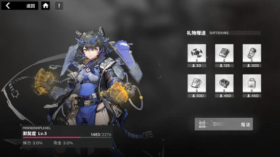默契度培养也就是给角色赠送礼物,不同礼物提升的数值略有不同,大家可以参考礼物注解来进行赠送。需要注意礼物送出是不能返还重置的。