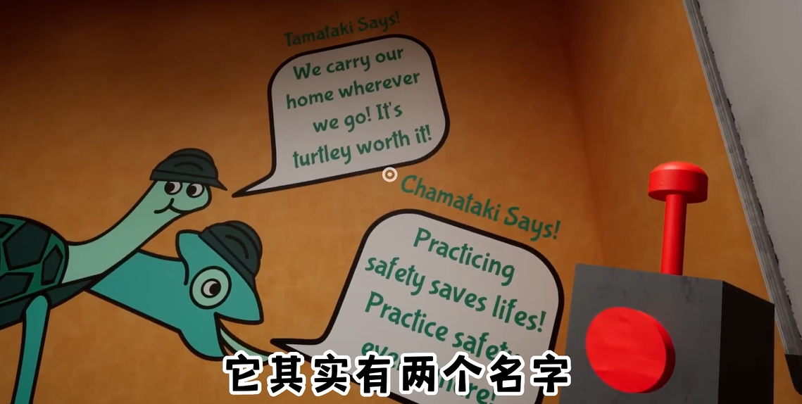 游戏一开始,在橙色斑斑面前,这个白色房间里是一些关于这个妙蛙种子的信息,它其实有两个名字,分别是“Tamataki”和“Chamataki”,而身体是由乌龟和变色龙组成。