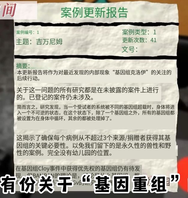 桌上还有份关于基因重组的文件,说明的这个幼儿园在做某些基因实验,而这些怪物就是基因实验的产物了。