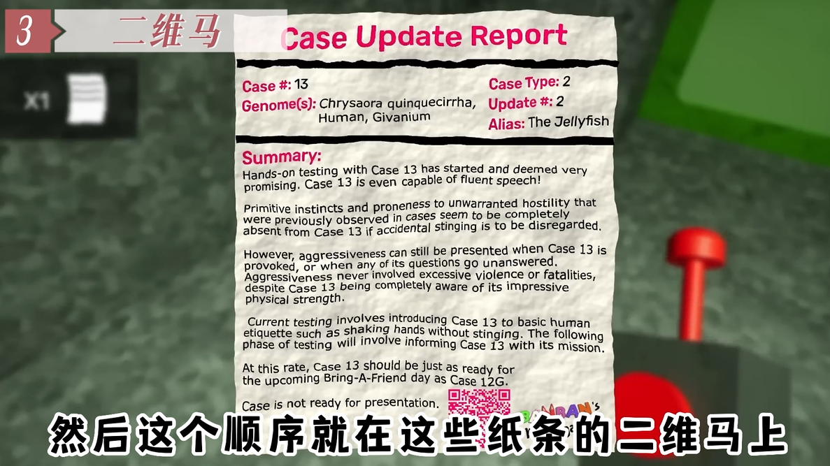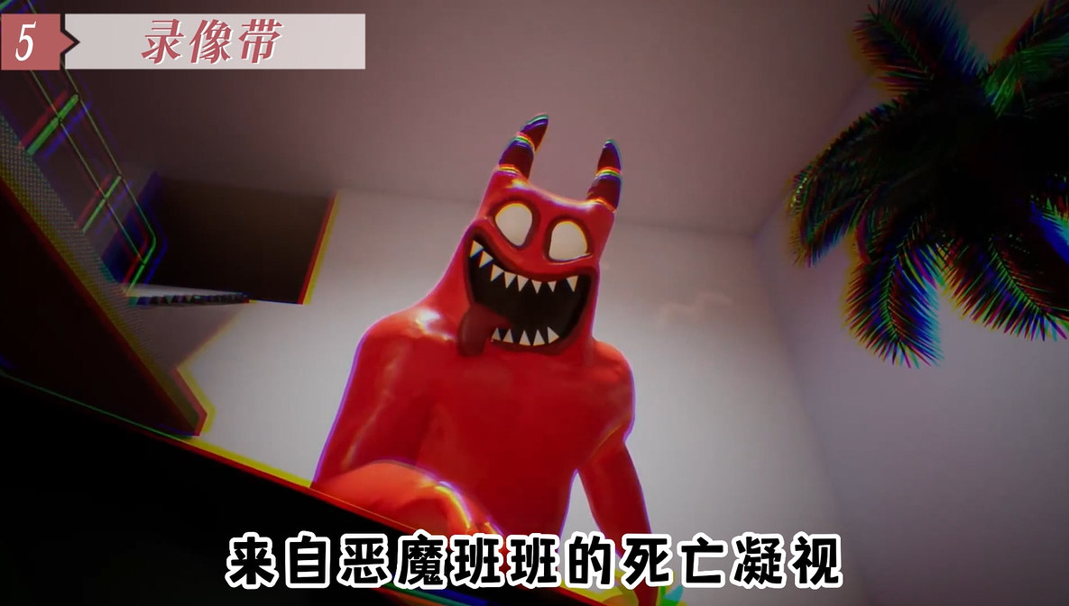 第一个录像是有一只青蛙被关在房间,我猜这应该就是幼儿园要提取他的DNA,制作游戏第四代的蟾蜍警官。第二个录像带不知道要表达什么,但我们能清楚看见有活的小朋友,是幼儿园早期录像吧。第三个录像带就震撼了,我们可以看见红色斑斑发疯的全过程,他看起来好痛苦,然后……