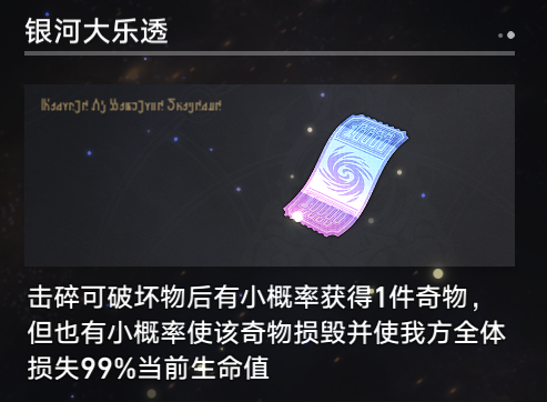 在模拟宇宙中每次通关精英怪或者一些事件还有开局,银河大乐透都有概率获得“奇物”,奇物可以增加伤害或者在对战中发挥特殊作用,是不可或缺的道具。