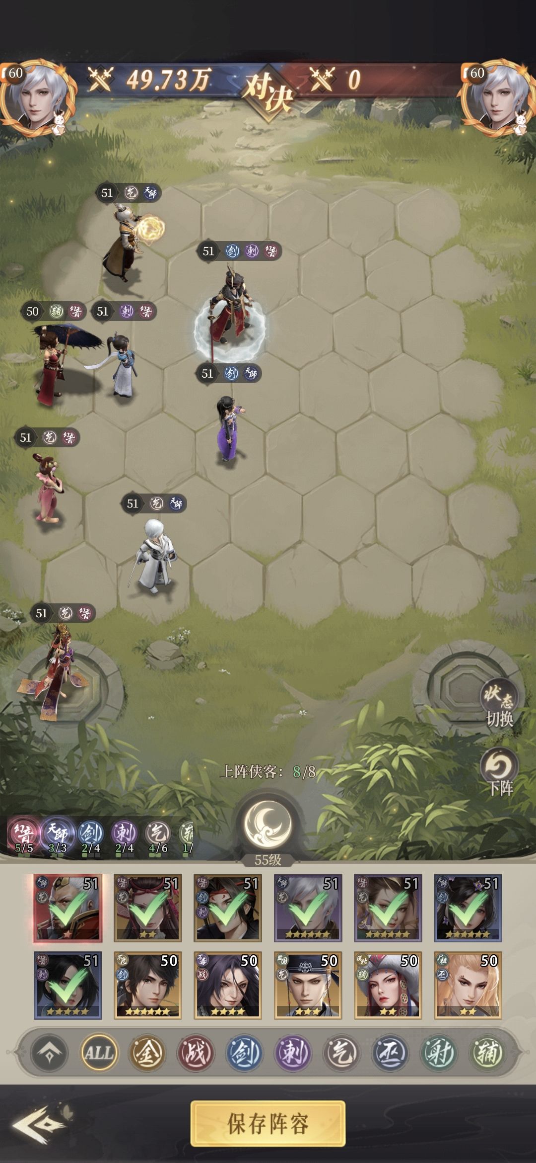李茂贞和姬如雪为2刺客,刺客可以跳到敌方后排对输出进行精准打击。这就避免了如果对面阵容前排太肉,我们不能很快秒掉对面前排而造成打不死对面输出侠客的情况。且姬如雪的技能可以对大范围的敌人造成控制效果,为气宗的输出提供了有利条件。