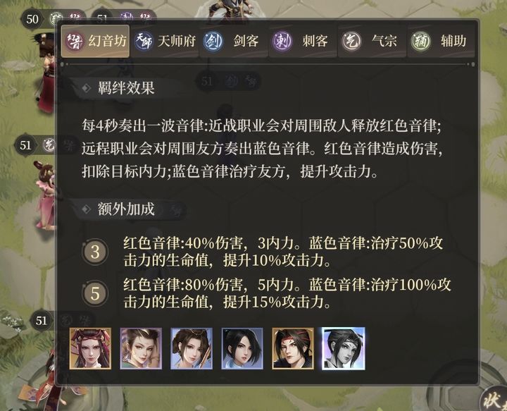 组成:5幻音,4气,3天师,2剑,2刺,1辅助 的羁绊阵容