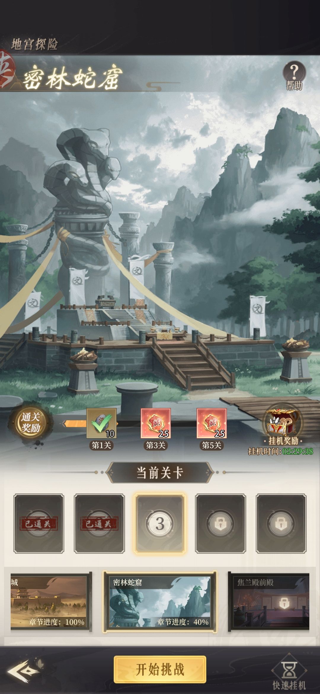 第二天我们还是和第一天差不多只是把阵容补全一下也是过图普通过不去就打精英只不过第二天会解锁地宫