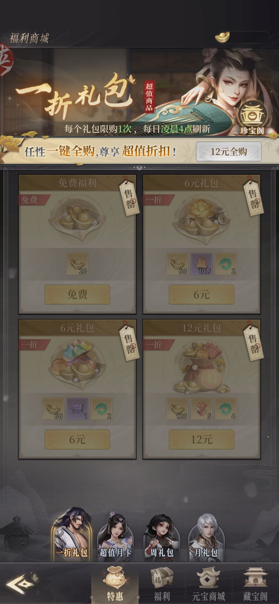 第三天 尸祖活动元宝全用了有条件的话可以拉下特惠礼包选气
