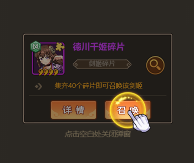 《点心萌物语》剑姬碎片的用处光环新资讯发布于 2023-05-22关注当获得剑姬碎片后,就可以通过碎片合成来获得剑姬了。在背包中召唤,就可以获得剑姬,多多收集剑姬碎片吧~~~点击召唤即可合成完整的剑姬了哦