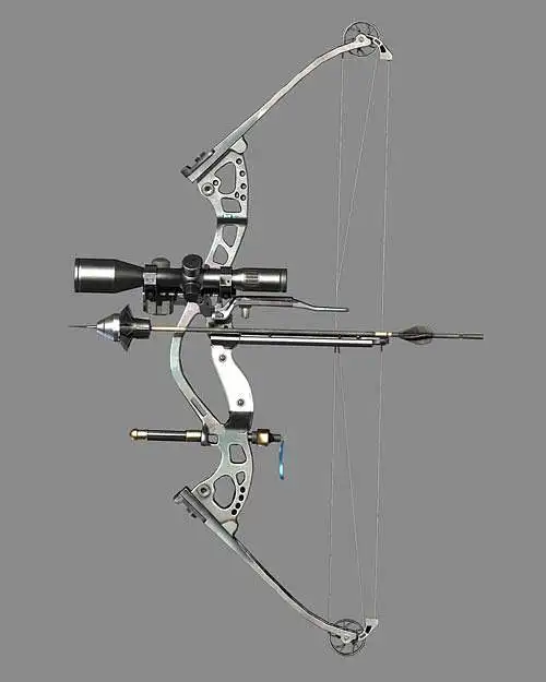 现代复合弓更符合大家的印象,弓上布满了机械结构,科技感十足,也是我们后期可以拥有的武器。