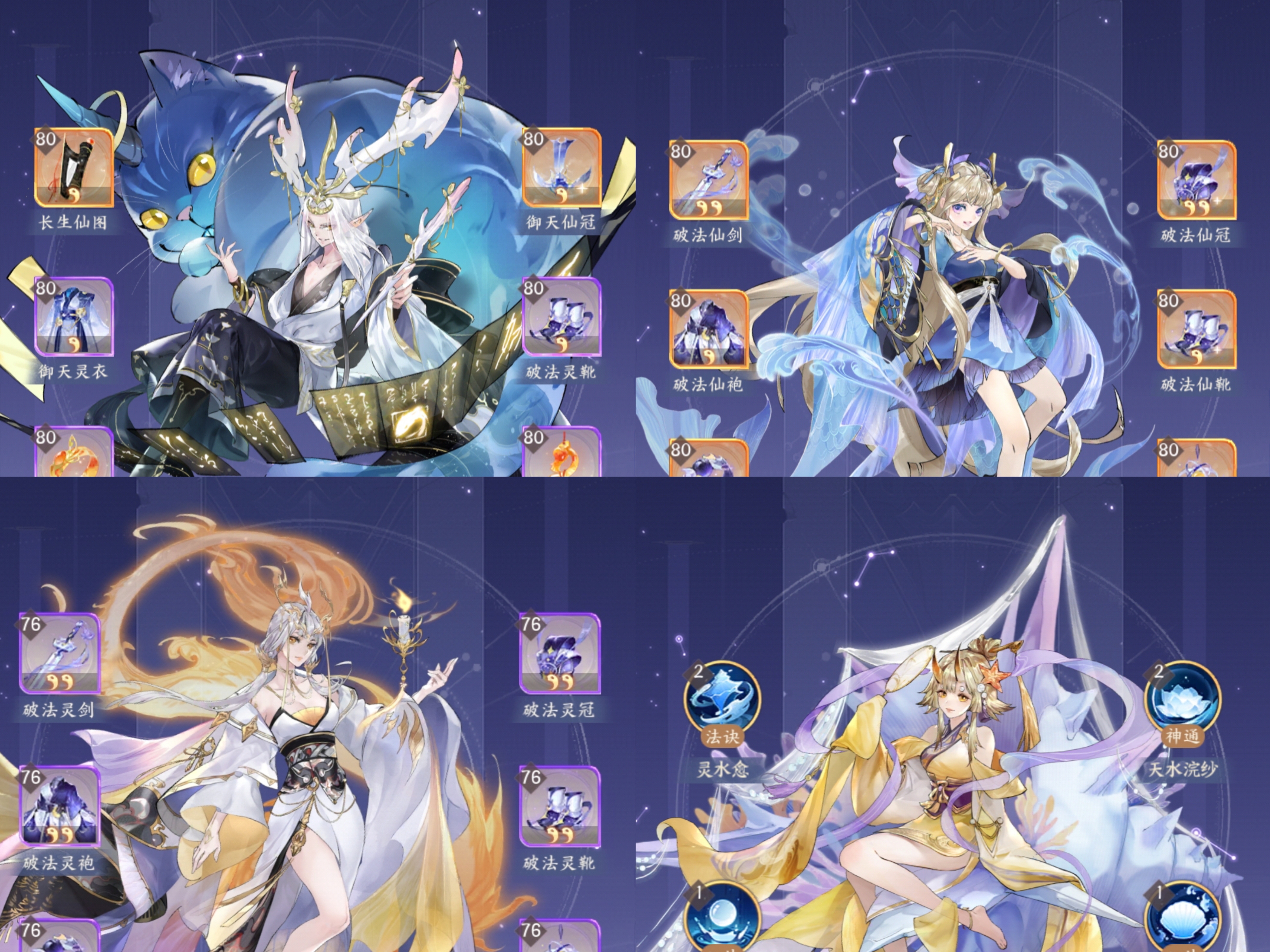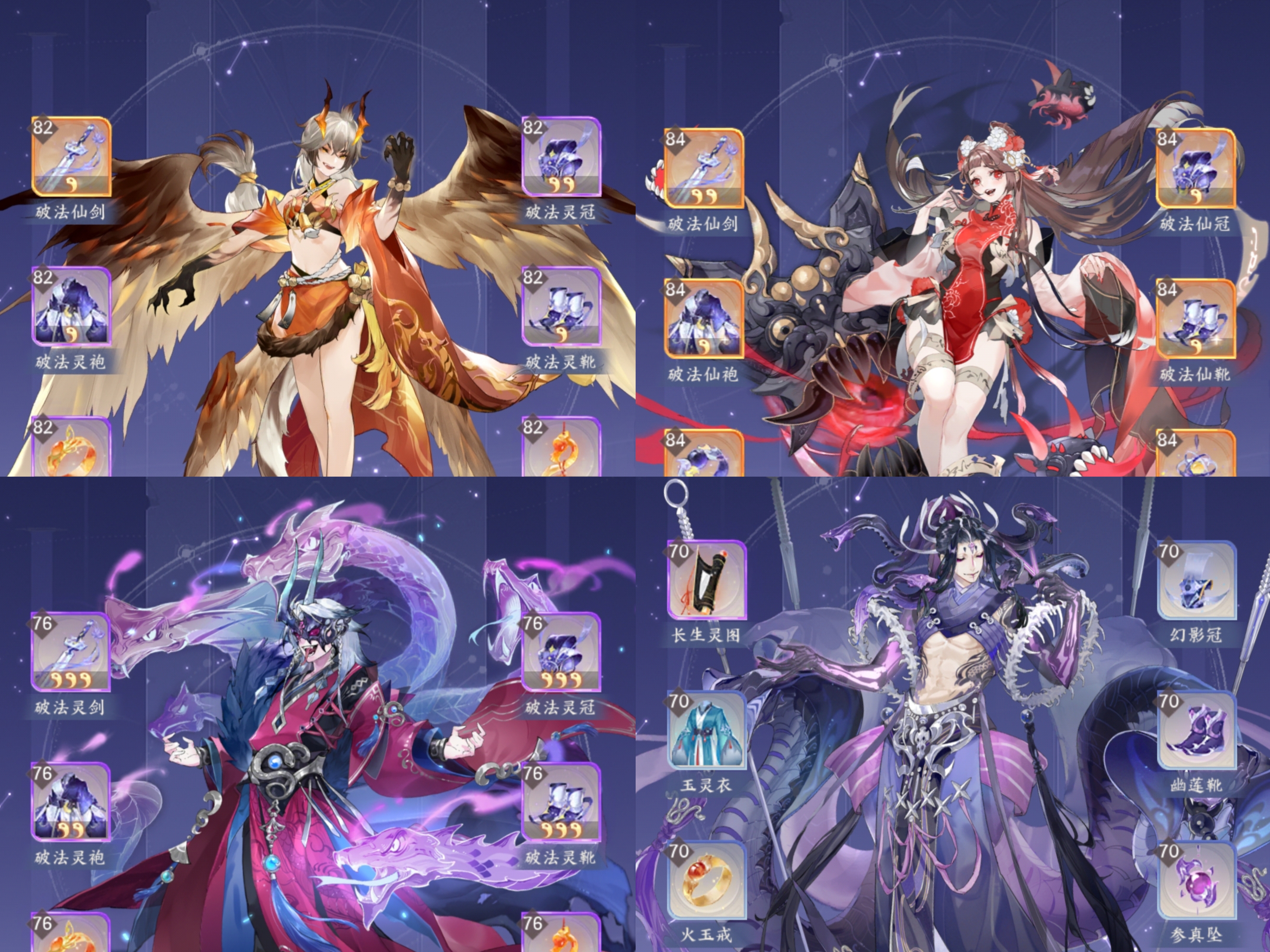 解析:青龙 白泽 九尾 三破法套装输出拉满,又有控制,最后鸱吻如果破法套装不够,可以带长生或者是御天套装就可以了。