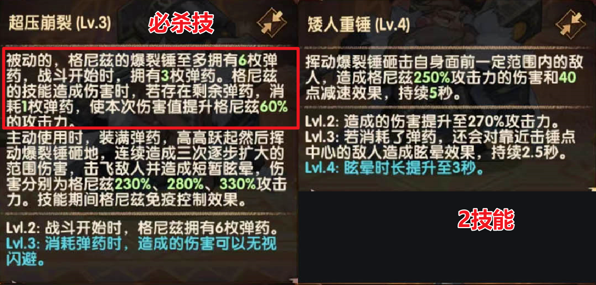 矮人的技能围绕弹药设计,弹药最多有6枚。消耗弹药会增加技能伤害和控制效果。