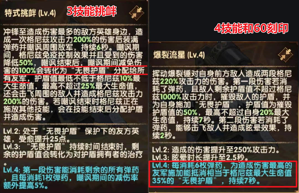 挑衅2段可以为队友提供护盾,60刻印也可以为我方主c添加护盾