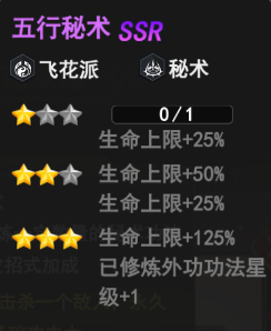 五行秘术(飞花派、秘术)——升至3星使已修炼外功功法星级+1,提升生命上限