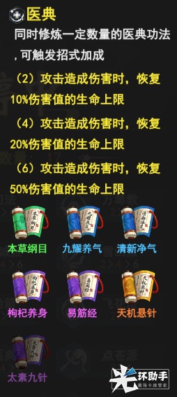 2、6医典或4医典(个人偏爱6医典,回血嘎嘎多),因医典有7个功法选择,各位可以看发牌员以及实际搭配情况来选择6个即可~