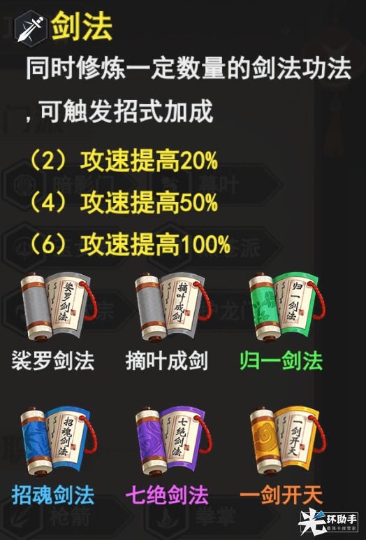 3、6剑法,提升攻速,配合高暴击和暴伤进一步提升伤害,简单粗暴,前期也可以先拿剑法,配合刀法速度过关