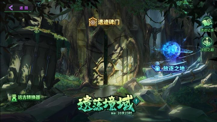 活动期间,镇魂将可以使用系统提供的虚拟角色参与【放逐之地】的玩法。选择好角色后中途将无法进行更换,并且血量也不会在战斗结束后恢复。成功通关【放逐之地】后,将会解锁【遗迹碑门】,镇魂将可以使用参与过【放逐之地】玩法的角色进行挑战。