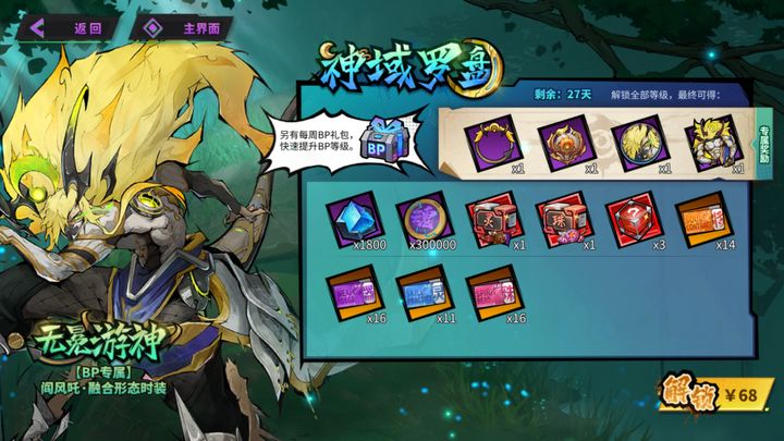2、任意时间解锁【神域罗盘】可立即领取当前等级之前的额外奖励线内容。
