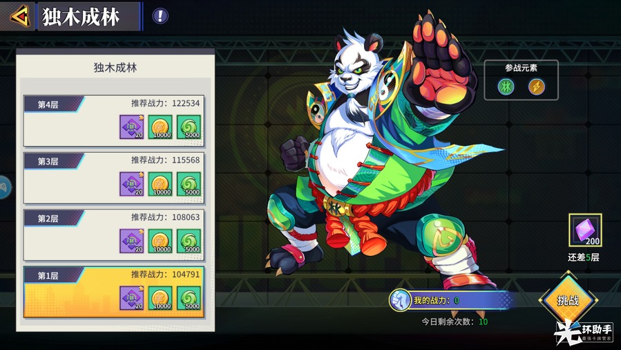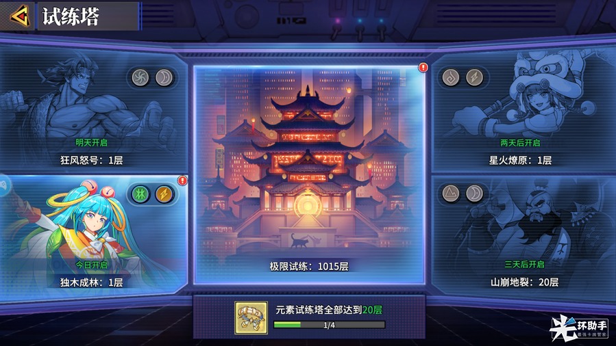 3.每天开放一种元素塔,开放挑战的每种元素塔,当天最多挑战10层。