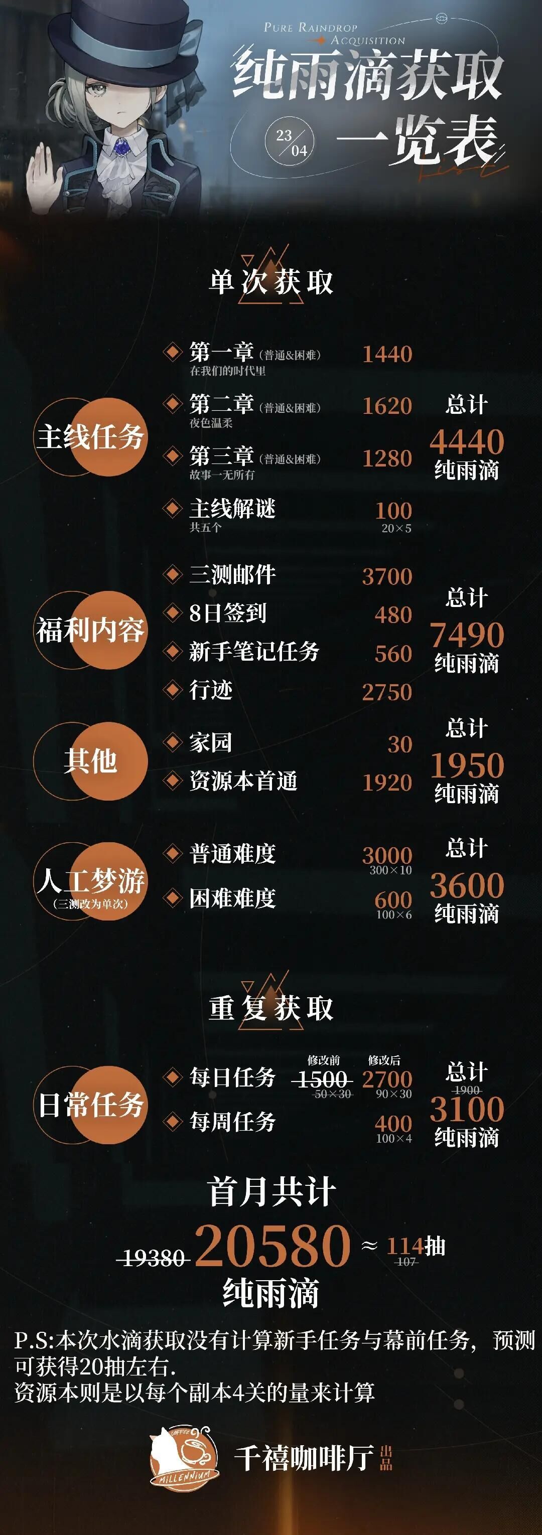 纯雨滴获取统计一览