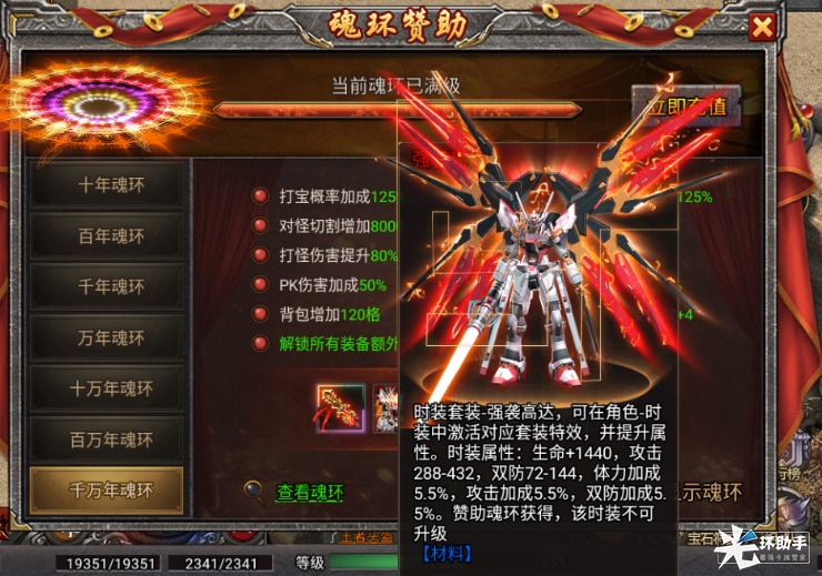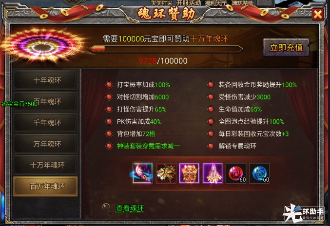 《决战千年》魂环赞助介绍光环新资讯发布于 2023-05-24关注1、魂环赞助可提升各种属性还可以获取稀有装备、稀有时装2、使用元宝即可升级魂环3、激活魂环可获取特殊外观【魂环等级】十年魂环百年魂环千年魂环万年魂环十万年魂环百万年魂环千万年魂环