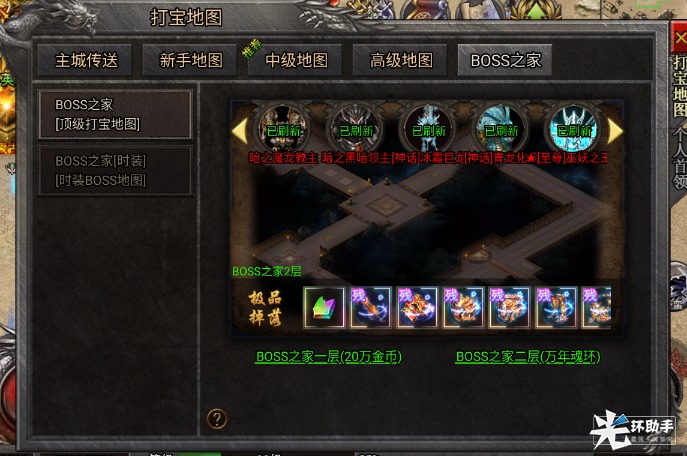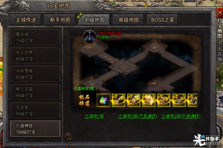 《决战千年》打宝地图介绍光环新资讯发布于 2023-05-24关注1、打宝地图直接点击可全地图进行传送2、部分地图传送需要消耗部分金币3、55级以上地图有专属【神话BOSS】击杀会掉落高级装备、高级材料4、BOSS分为2层,每一层刷新【神话BOSS】刷新时间2~6小时5、个人首领每天可挑战一次,掉落高级装备、高级材料