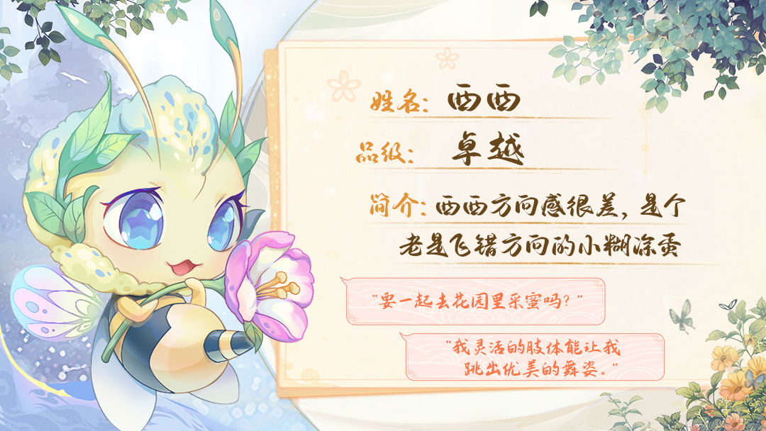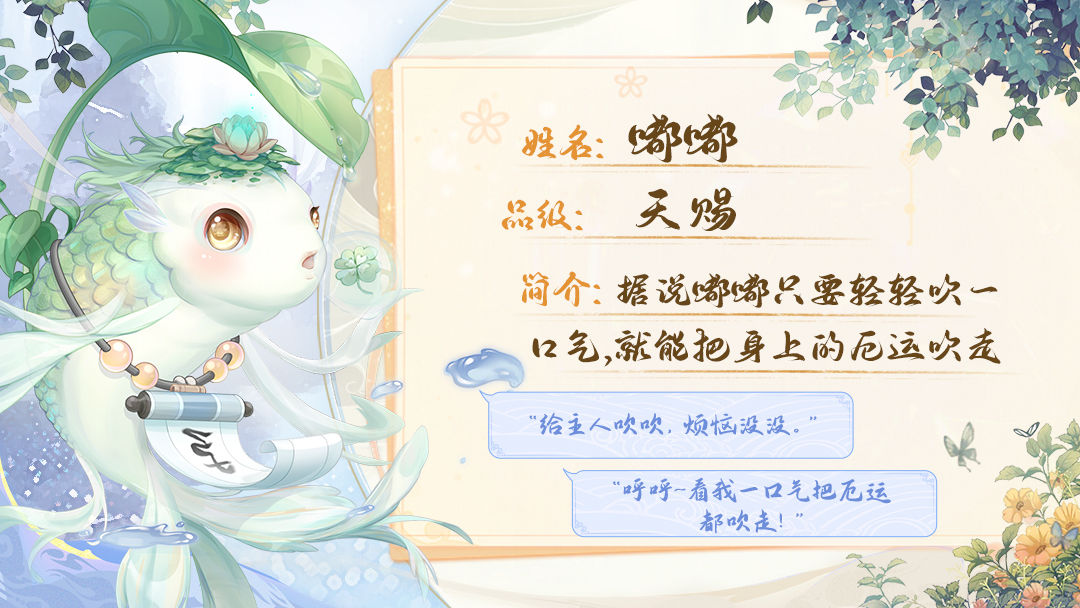 灵兽集结 | 你的本周守护灵兽是谁?灼热阳阳发布于 2023-05-25关注除魔花使们好~花神客栈有一方孵化灵兽的小天地,每天看着他们从蛋中破壳而出,总会给人带来别样的惊喜!锵锵——本周守护灵兽这就来了嘛! 幸运BUFF的嘟嘟、顽皮快乐的菇菇、悠闲云游的酒蜗、躺平摸鱼的团团,还有爱好独处的乌面前来报到!给花使们带来一周的好运~ 当然游戏中还有更多可爱的灵兽等待花使们发现!还没参与花影测试的花使,快进入穿书局特制的传送阵,一段国风古韵的绮幻之旅正等着你呦!