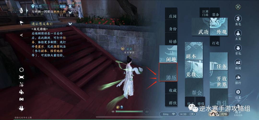 江湖游历是整个游历玩法中最重要的部分,它将根据行囊配置随机触发不同品质的事件。当玩家解锁游历系统后,将自动开始江湖游历。