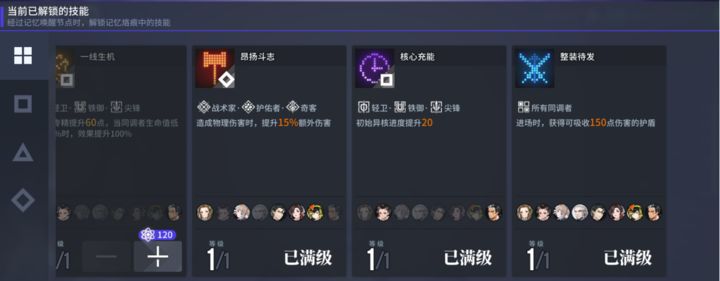 给队伍配置上不同属性和技能构成的“精神蚀刻”,能够获得完全不同的战斗体验,同样的队伍构成,选择不同的"精神蚀刻",就可以一键完成肉盾队到菜刀队的转变。