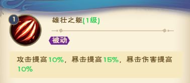 生命提高10%/15%/20%,暴击提高15%/20%/25%,攻击提高10%/15%/20%