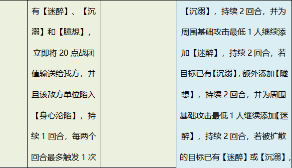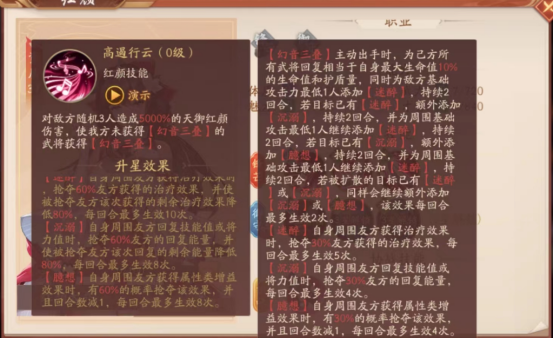 此时玩家吐槽,小编呀,这不就是添加了一个重伤效果,遏制恢复而已吗?如果你有这种想法,那就是低估大乔了。【迷醉】所引发的【沉溺】还会让周围敌军回复技能、将力值的时候被剥夺,导致敌军核心战力失去了爆发的源头,牢牢锁住了敌军的输出优势,至使变得羸弱。【臆想】更是让敌军想通过属性增益获取优势的方法,扼杀在摇篮中,概率被剥夺,使得敌军攻防皆被限制,任人宰割。