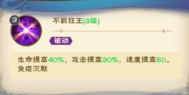 生命提高30%,攻击提高25%,速度提高50。免疫沉默。