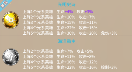 而上阵的英雄多少,就会有不同的阵营加成,所以适当的挑战阵营英雄是十份重要的。