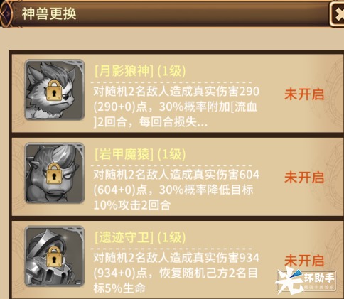 当然,上阵神兽也是可以的,而不同的神兽所能提供的额外效果也是不同的,而这个就看玩家自己的选贼了,比方说队伍中已经有真伤英雄了,那神兽可以选择一些附加流血或者降低敌方命中率的会好些。
