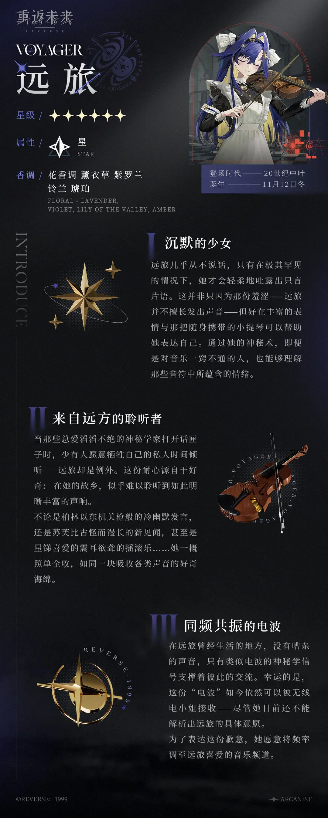 神秘学家 | 远旅零零惶惶发布于 2023-05-27关注神秘学家 | 远旅远旅 | Voyager*一段欢欣的音乐* 远旅几乎从不说话,只有在极其罕见的情况下,她才会轻柔地吐露出只言片语。这并非只因为那份羞涩——远旅并不擅长发出声音——但好在丰富的表情与那把随身携带的小提琴可以帮助她表达自己。通过她的神秘术,即便是对音乐一窍不通的人,也能够理解那些音符中所蕴含的情绪。