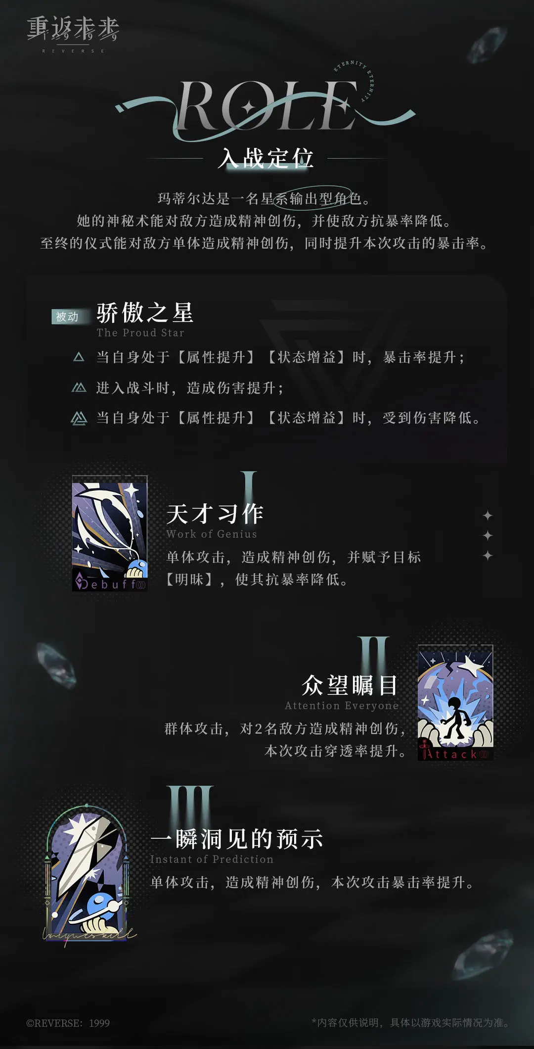 玛蒂尔达的好胜心和表现欲逐年增长。当她看到第一防线学校的巡礼演出后,便决意要入学,让那些整齐划一长大的孩子们瞧瞧——什么才是正统神秘学家的风范!