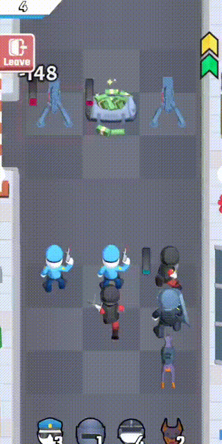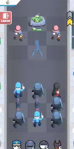 首先是消消乐的玩法,就是如果你的警察可以上下左右连接在一起,那就可以一次性地全部攻击,因为警察的攻击方式不一样,所以产生的效果也会不一样。