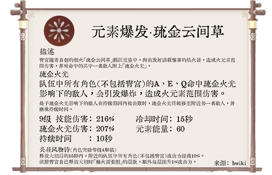 这个大招也是宵宫烈绽放玩法的核心,您可以暂时略过,我们在后面会为您详细解析: