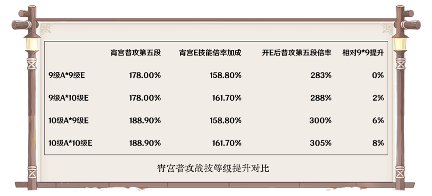 可以看出,宵宫优先点A(10*9)的伤害倍率提升是高于优先点E(9*10)的。