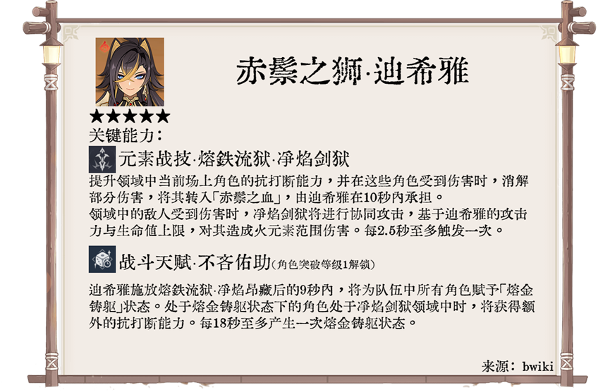 迪希雅天赋并不能完全抵抗敌人伤害,因此您还需要一个能回血的角色,这就给配队带来了局限性——绑定班尼特。