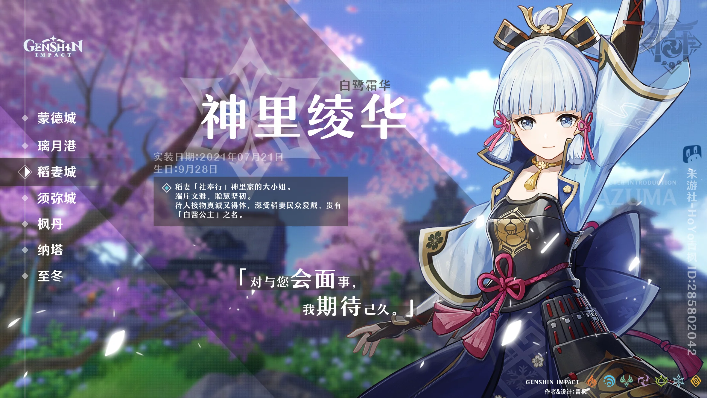 稻妻「社奉行」神里家的大小姐。端庄而文雅,聪慧又坚韧;