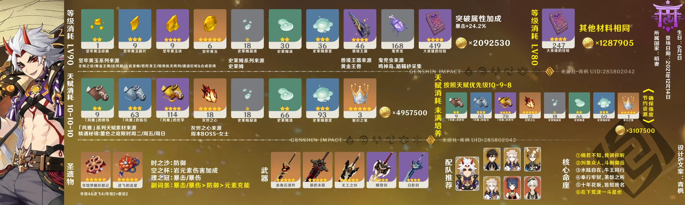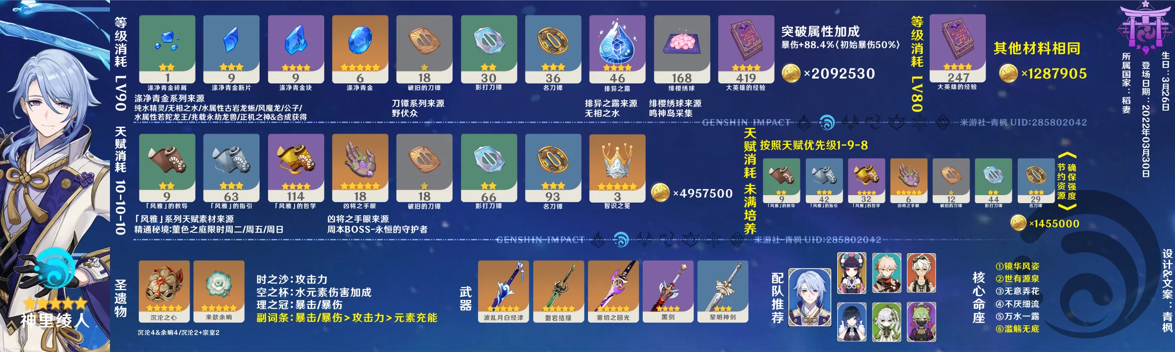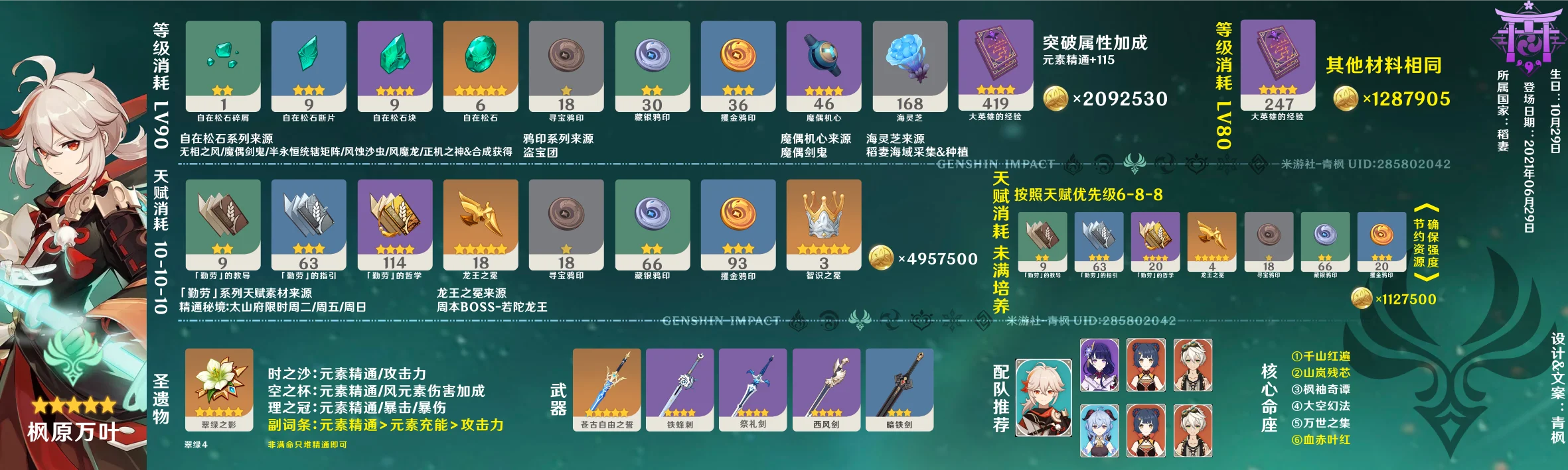1、等级消耗素材〈含满级lv90和lv80的素材消耗量,资源不足的情况下参考lv80消耗量〉;